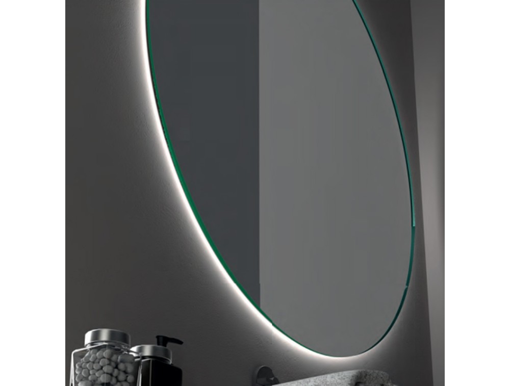 Schutzart IP44. 5 Jahre LED-Garantie. 4 mm Spiegelstärke. Der Spiegel mit polierten Kanten besticht durch seinen dünnen, nahezu unsichtbaren Rahmen. Er zeichnet sich durch eine klare, moderne Ästhetik aus, bei der das Licht scheinbar aus dem Spiegel selbst hervortritt und dem Raum Tiefe und Helligkeit verleiht.