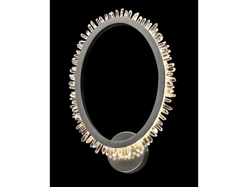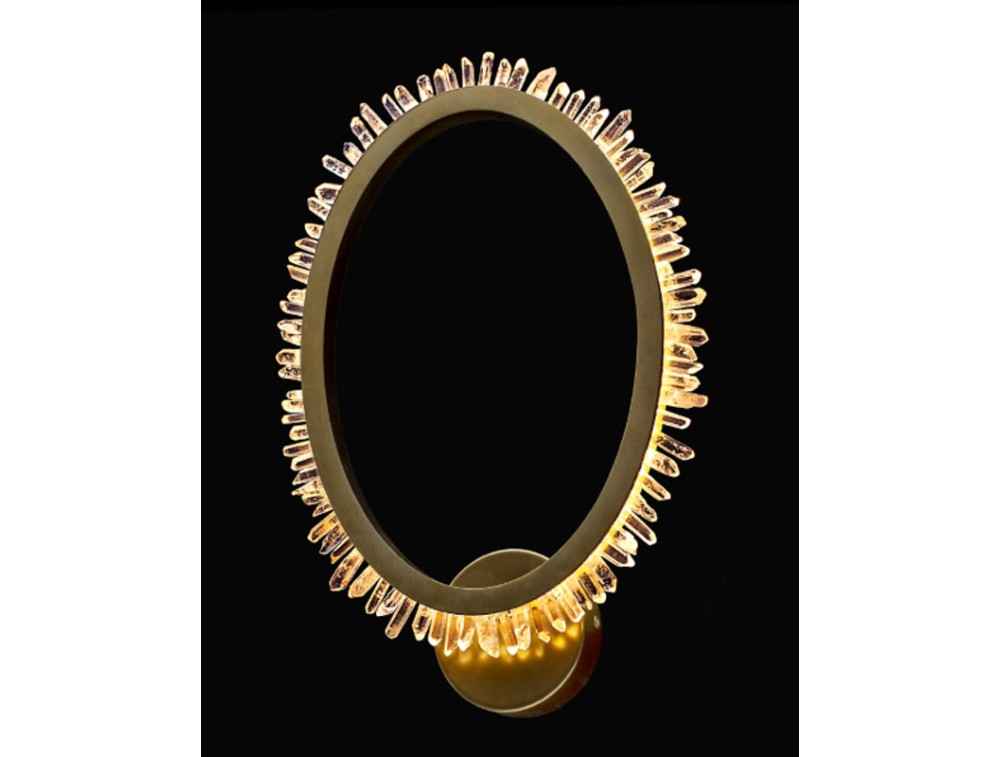 Wand- oder Deckenleuchte aus Quarzkristallen, die in zwei satinierten Metallringen gefasst sind. Ideal zur Dekoration und Beleuchtung von Küchen, Wohnzimmern, Schlafzimmern und Fluren. Erhältlich in satiniertem Gold oder satiniertem Nickel.