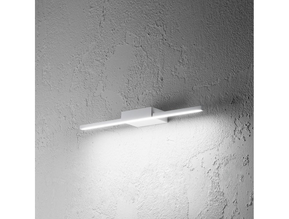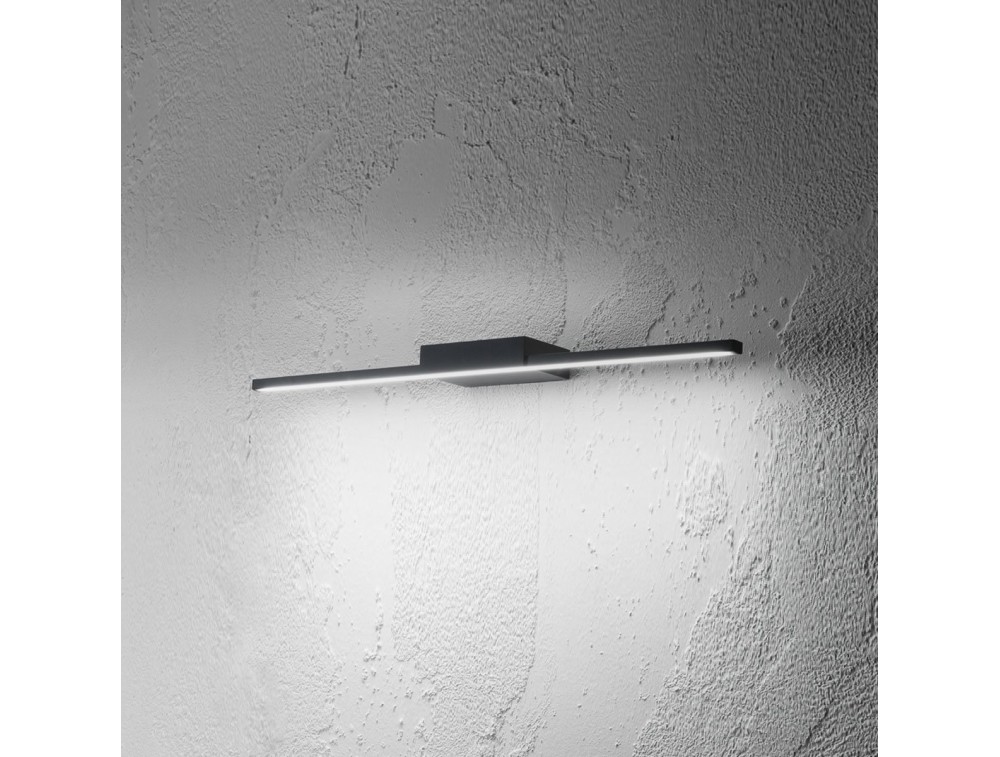 Ideal wall lamp for mirrors or paintings. A wall lamp with single light emission directed exclusively downwards.