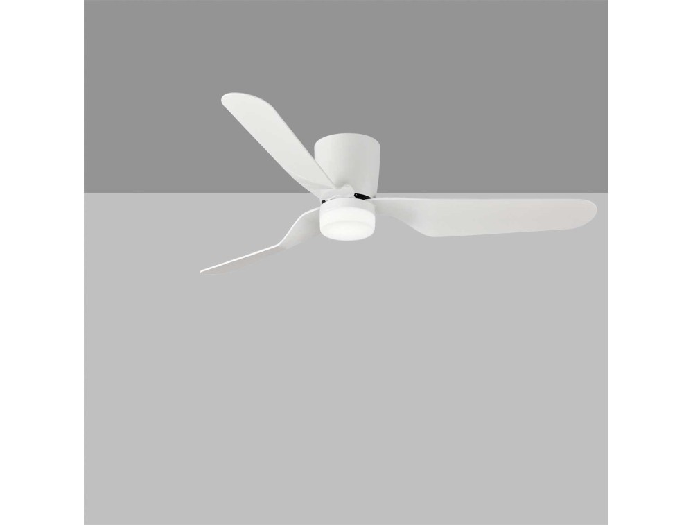 ACB fan with white or silver frame, 30W DC motor, 6 speeds, 3 ABS blades, timer, remote control included, LED light. Summer-winter function.
