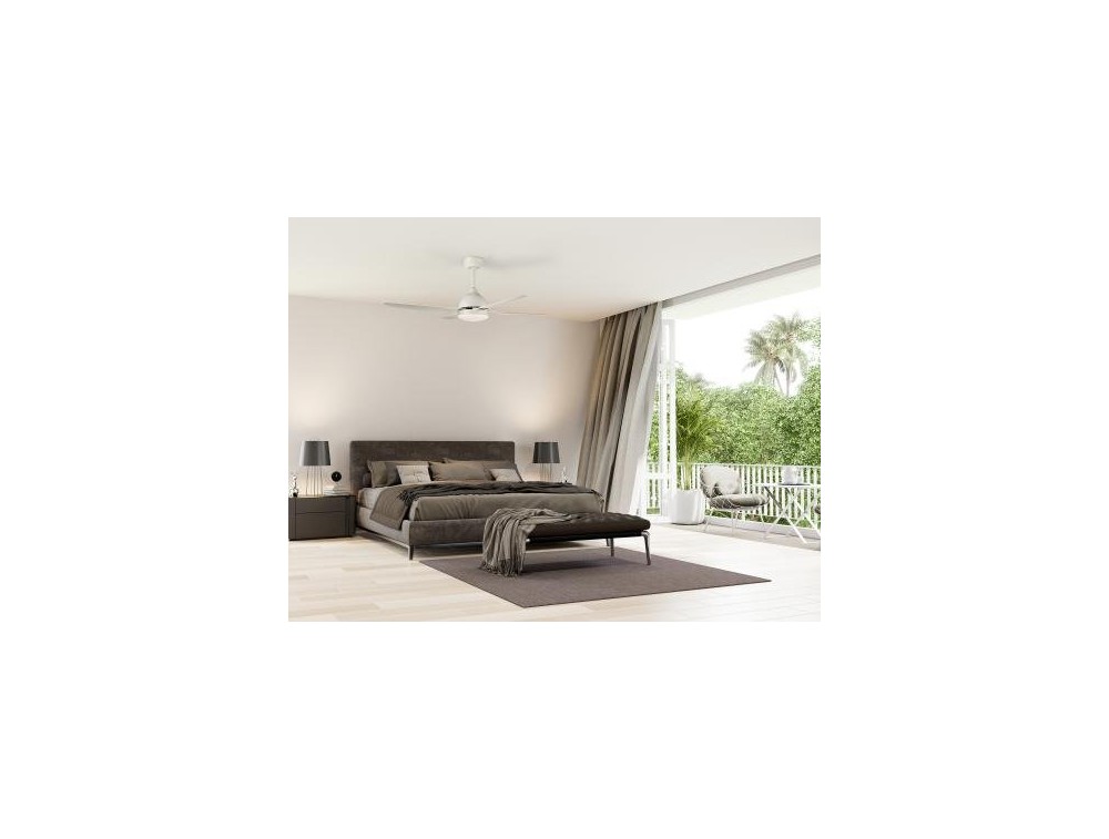 Ceiling fan with light equipped with 4 ABS blades. White color. The fan can be controlled by remote control or timer.