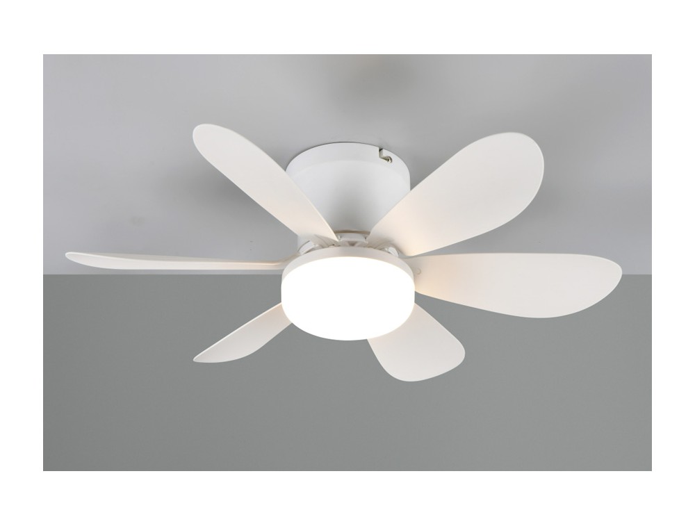 Plastic ceiling fan in black or white with integrated LED and dimmable function. 6 speed levels. Light temperature and brightness can be adjusted via the integrated dimmer. The fan can be turned on and off via remote control. RGB LEDs (red, green, blue). In summer mode, cooling is generated, while in winter mode, the fan ensures better distribution of warm air. Integrated timer function to turn on and off at a predefined time. Ideal for kitchens, living rooms, hallways, and bedrooms. IP20 protection and a 5-year warranty on the LEDs.