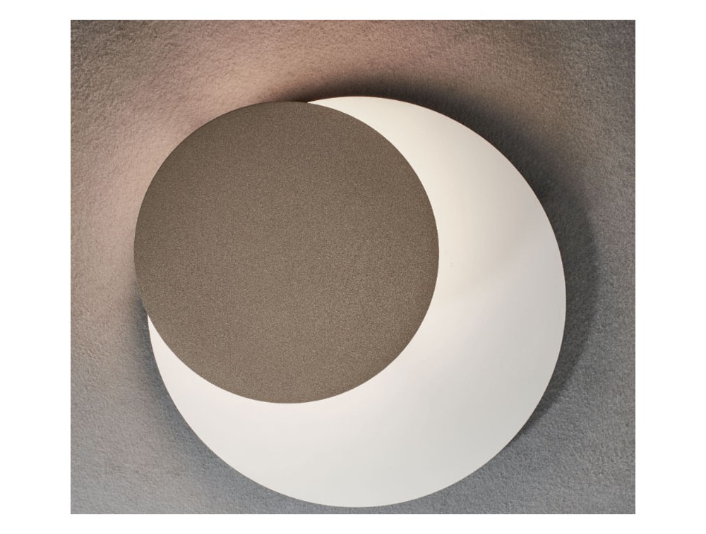 This ceiling light features a sculptural and dramatic design that plays on overlapping elliptical shapes and the use of warm metallic finishes. The combination of direct light from the spotlights and light reflected on the surface of the inclined disk provides effective yet comfortable lighting. Shipping is free and the warranty is 2 years.