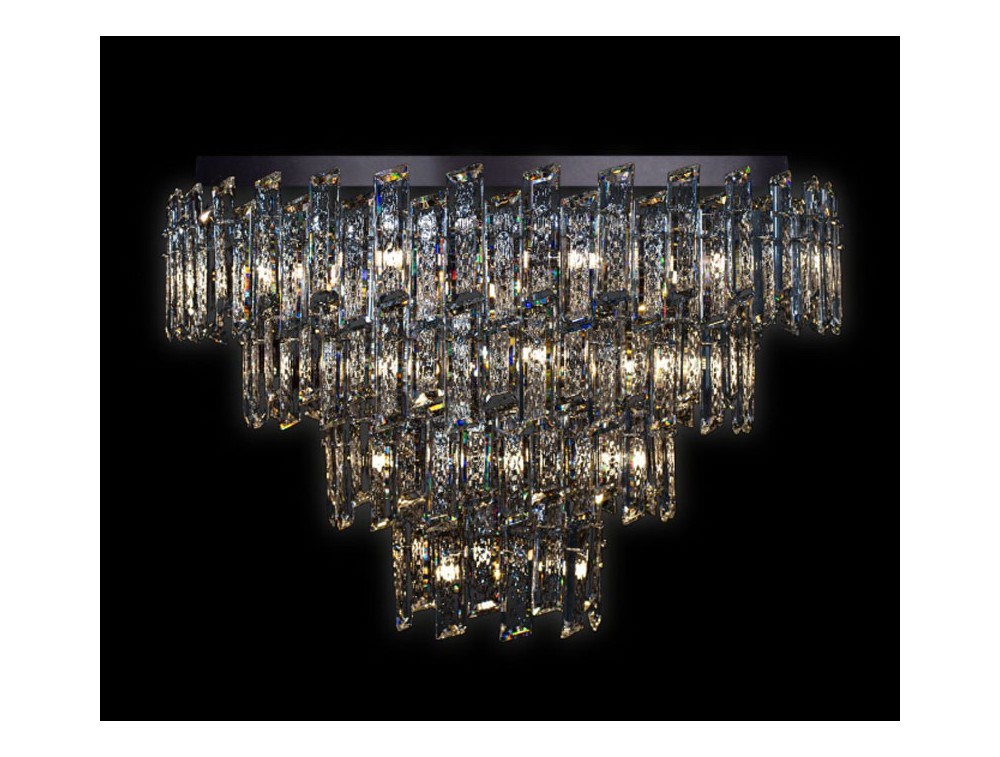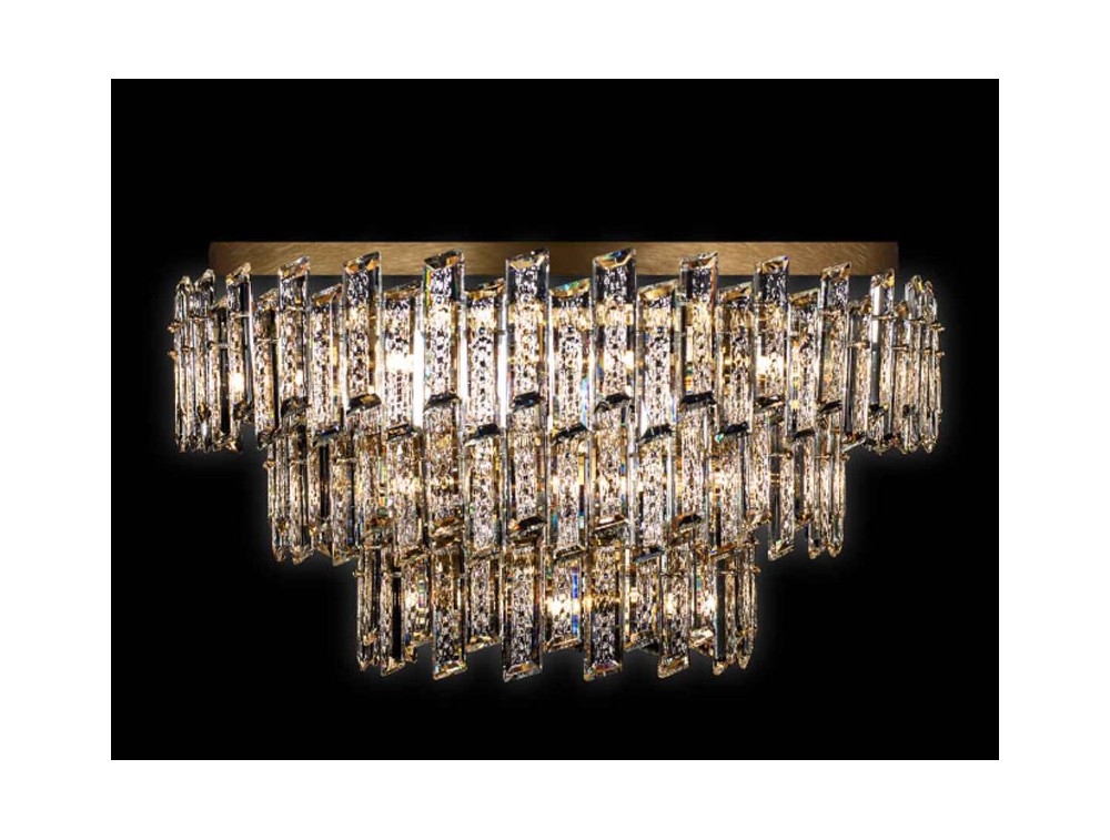 Ceiling lamp with magnificent K9 crystals and a polished gold and chrome metal frame. Perfect for decorating and illuminating the kitchen, living room, hallway, and bedroom. The allure of these magnificent K9 crystals is further enhanced by a structured centerpiece, with an eye-catching size and breathtaking beauty. The whole thing exudes luxury and high-end appeal. A rich cascade of three levels with adjustable height.