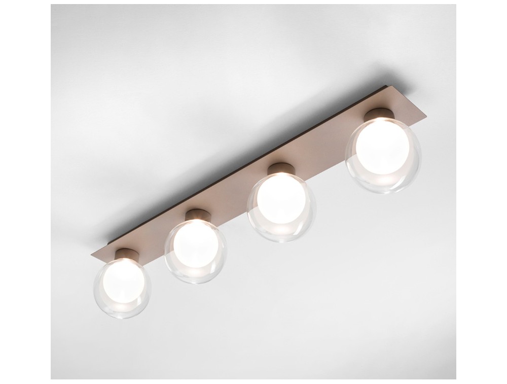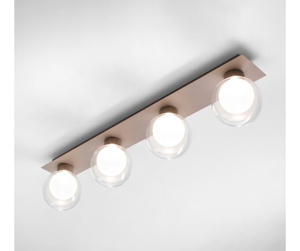 Ceiling lamp made with an aluminum base and glass diffuser. Champagne color with integrated LED light source, warm light (3000K). Perfect for the living room, bedroom, kitchen, and hallway.