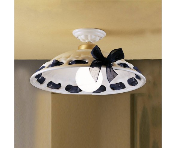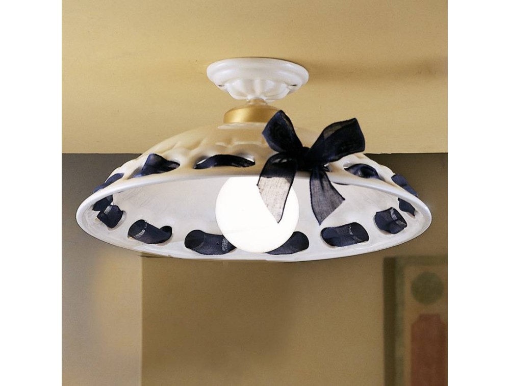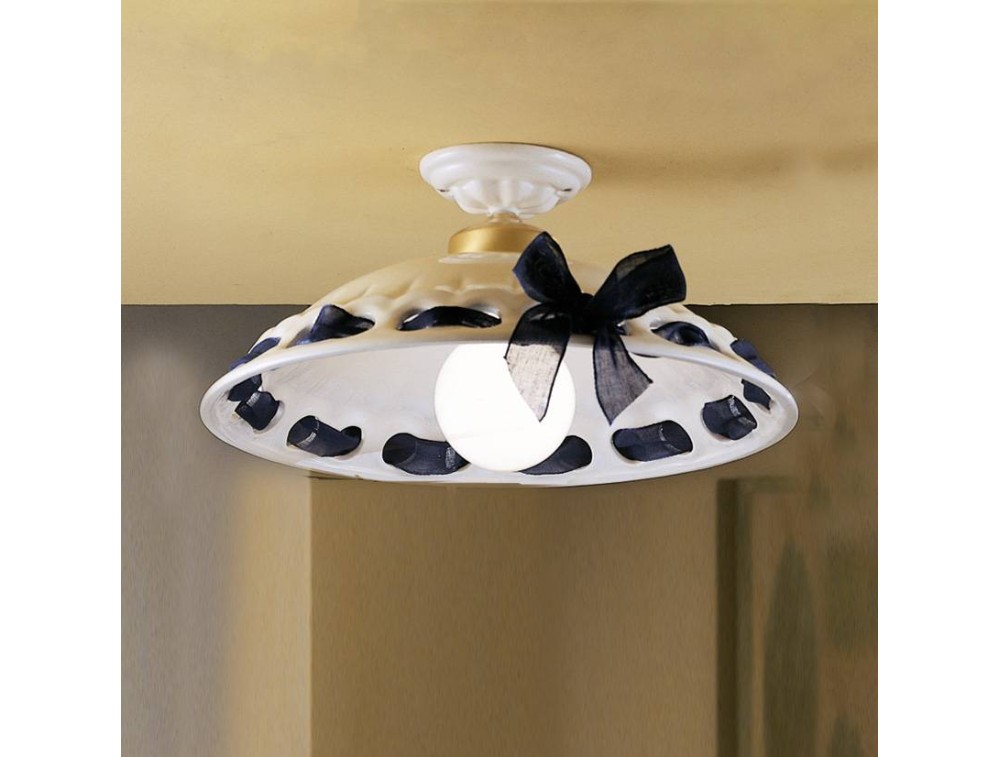 Ferroluce, rustic ceiling lamp in hand decored ceramic, ribbon not included.