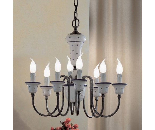 Ferroluce, rustic chandelier in hand decored ceramic diffuser and metal structure.