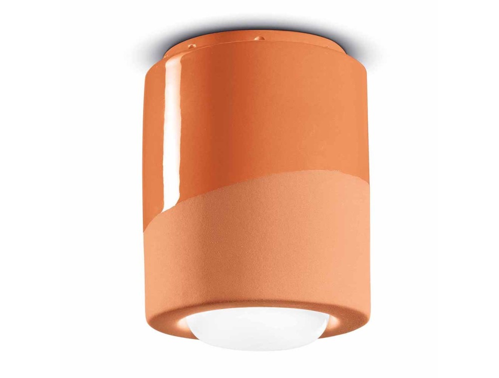 Modern ceiling lamp FERROLUCE PI made entirely of ceramic. The formal precision and the rigor of the volumes is the distinctive character of this collection that, skillfully combining regular geometric shapes with characteristic patterns and hidden technical elements.
