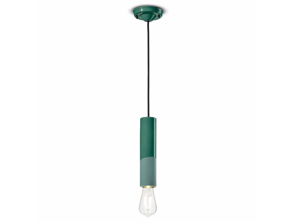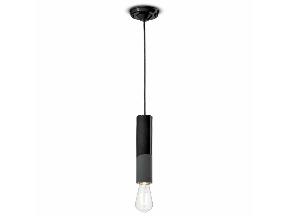 Modern pendant lamp FERROLUCE PI made entirely of ceramic. The formal precision and the rigor of the volumes are the distinctive features of this collection that, skillfully combining regular geometric shapes with characteristic patterns and hidden technical elements