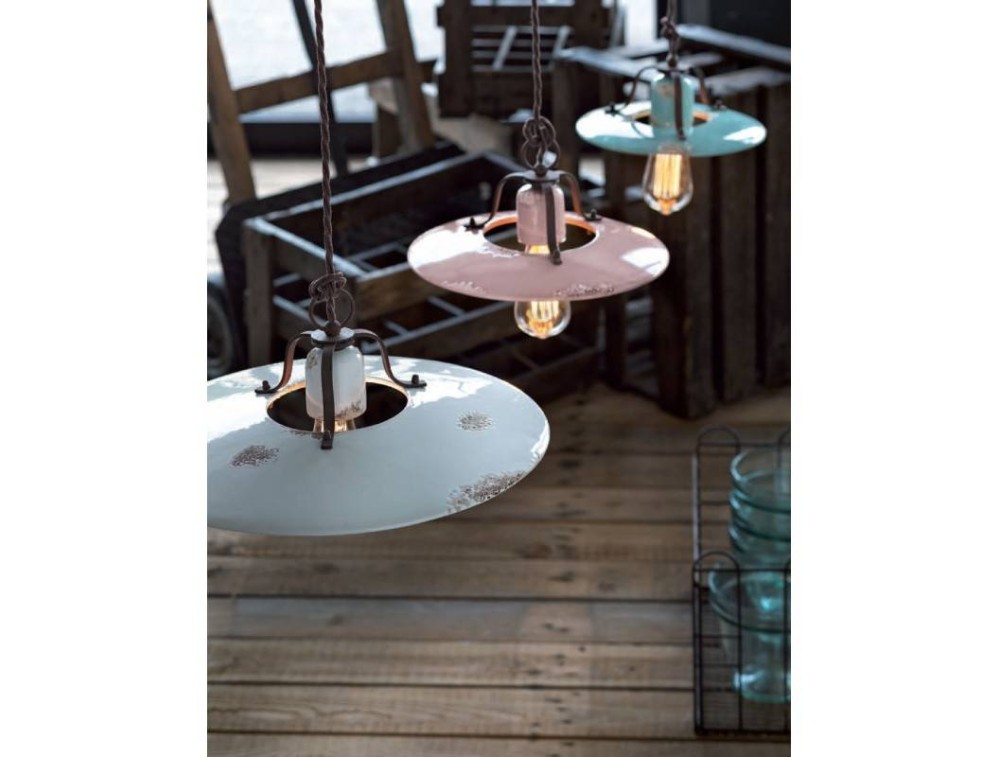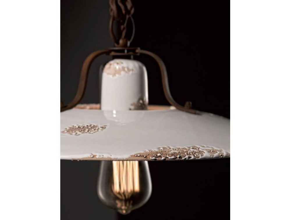 Ferroluce lighting, suspension lamp made with oxided metal structure and ceramic diffuser in vintage finishes.