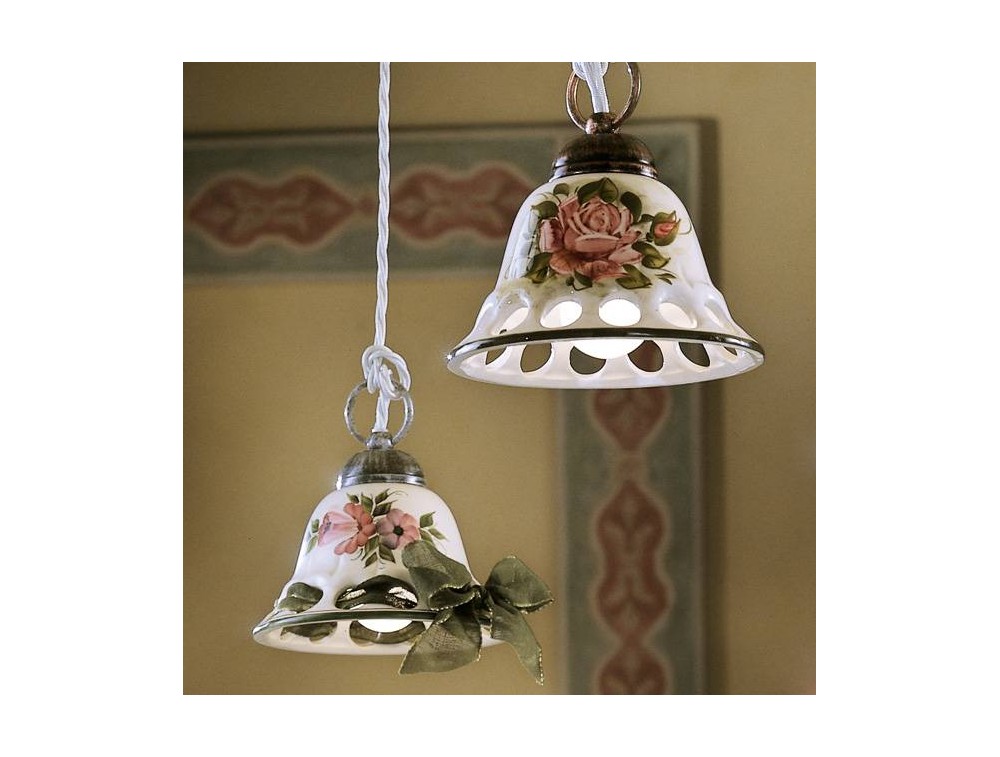 Ferroluce, ceramic suspension lamp hand decored made with metal structure, fabric ribbon not included.