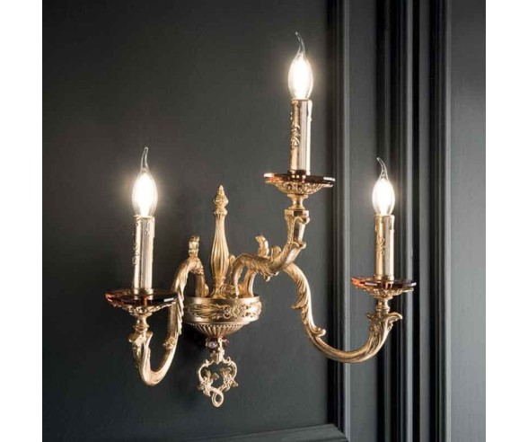 Ciciriello lighting, wall lamp made of brass hand decorated with gold leaf. Available in different finishes. Made in Italy