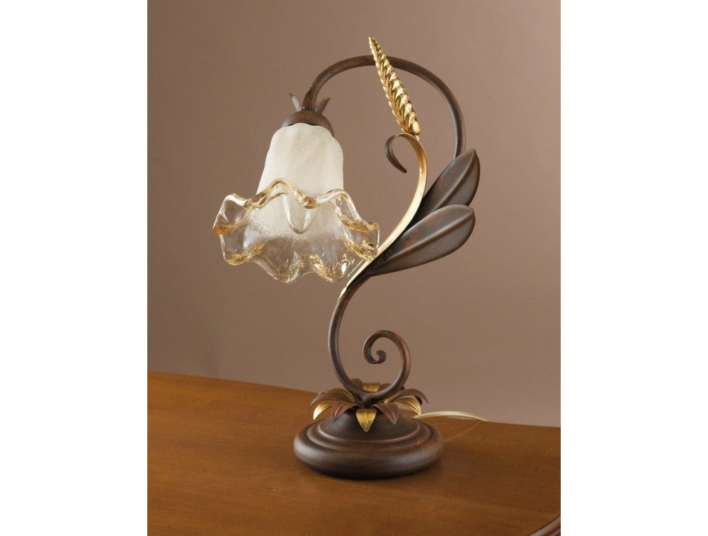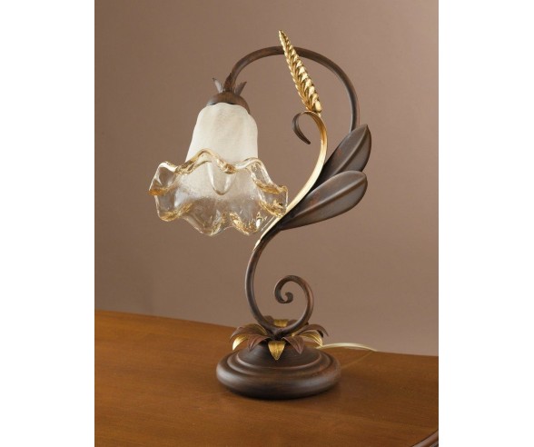 Classic design table lamp made of an ivory colored wrought iron structure with silver leaf details and murano glass diffusers. This lamp has a precise objective, illuminating the spaces in which we live with refinement and elegance. Lamp made entirely by hand by the most expert craftsmen who make the collection sinuous in its lines and refined in its finishes. Ideal in rooms of any size with a classic or rustic design.