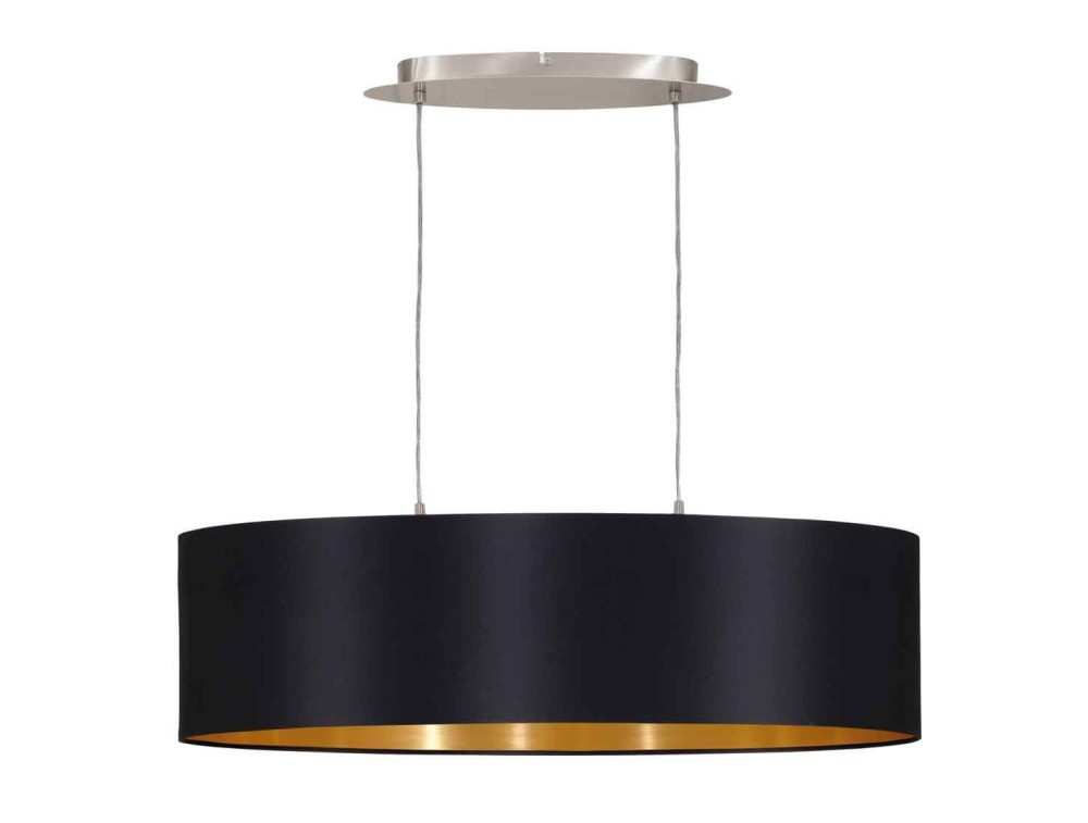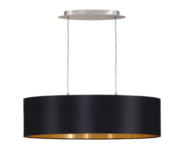 Structure in satin nickel metal, Diffuser in dove gray, cappuccino, or black fabric with golden interior.