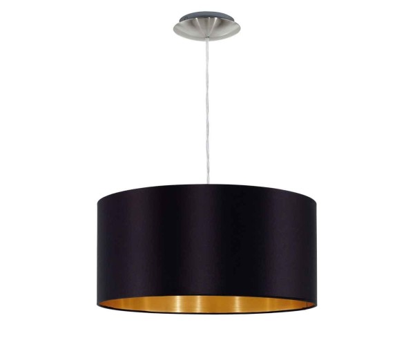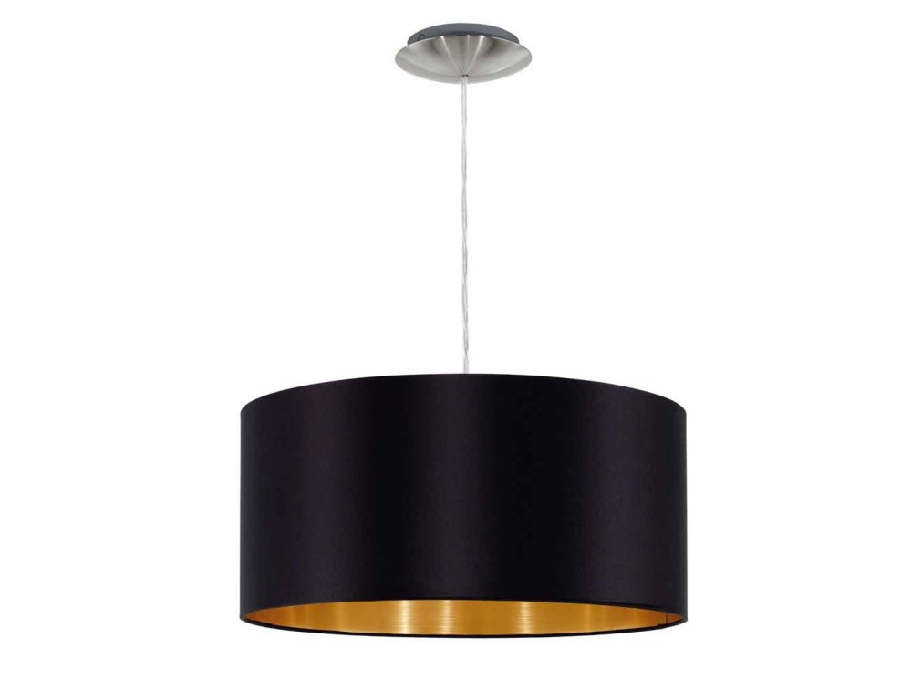 Structure in satin nickel metal, Diffuser in dove gray, cappuccino, or black fabric with golden interior.