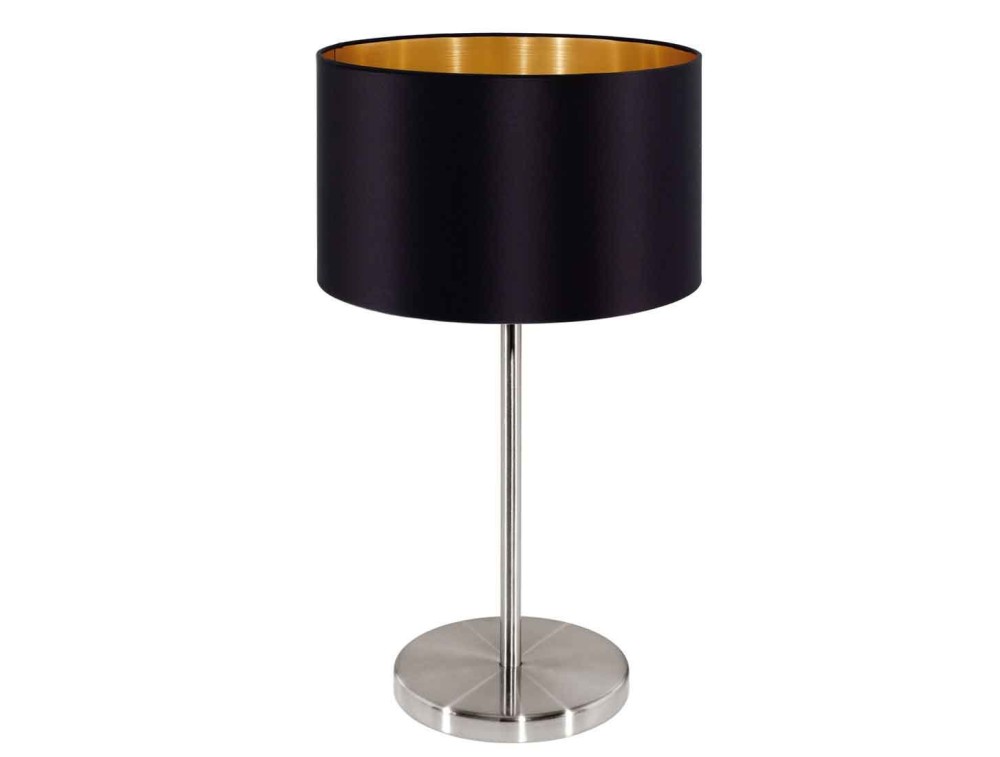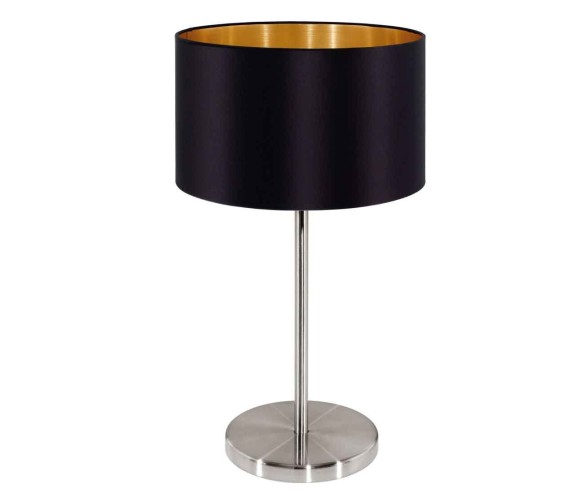 Satin nickel metal structure, Diffuser in black, gray, taupe or cappuccino external fabric with golden interior. Dimmable