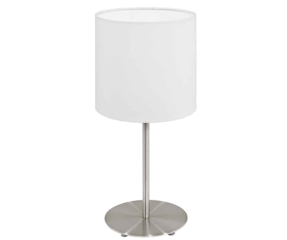 Satin nickel metal structure, Diffuser in white, gray, taupe external fabric with white interior. Dimmable