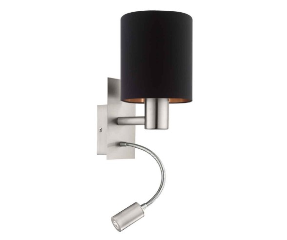 Satin nickel metal structure, Diffuser in white or black external fabric with copper interior.