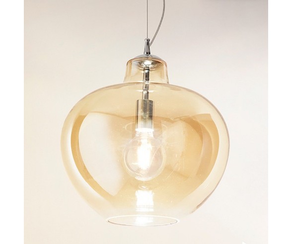 Perenz lighting, suspension with structure in polished chrome metal, diffuser in transparent glass with amber shade or mirrored smoky shade. Height adjustable. Diameter 36.5 cm; Height 150 cm adjustable; Diffuser height 40 cm 1 x max 60W E27 220-240 V
