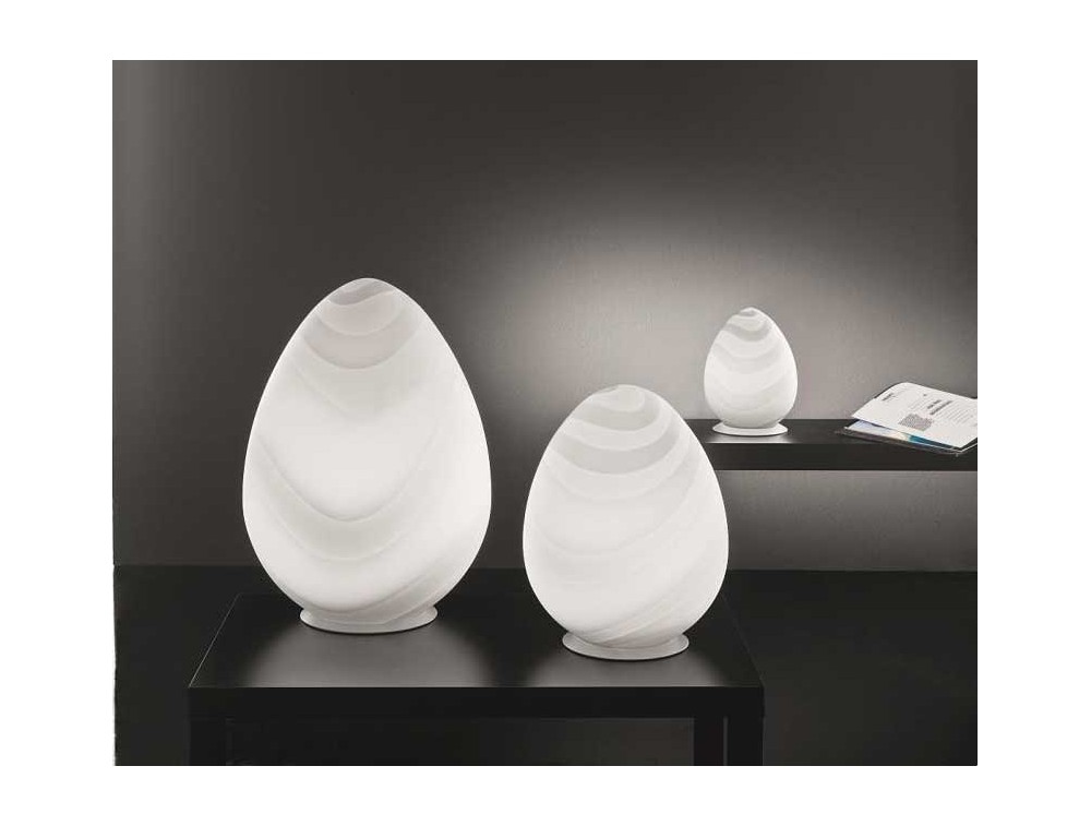 Selene Lighting, table lamp made of white blown glass with or without decoration. Available in three sizes. Made in Italy.