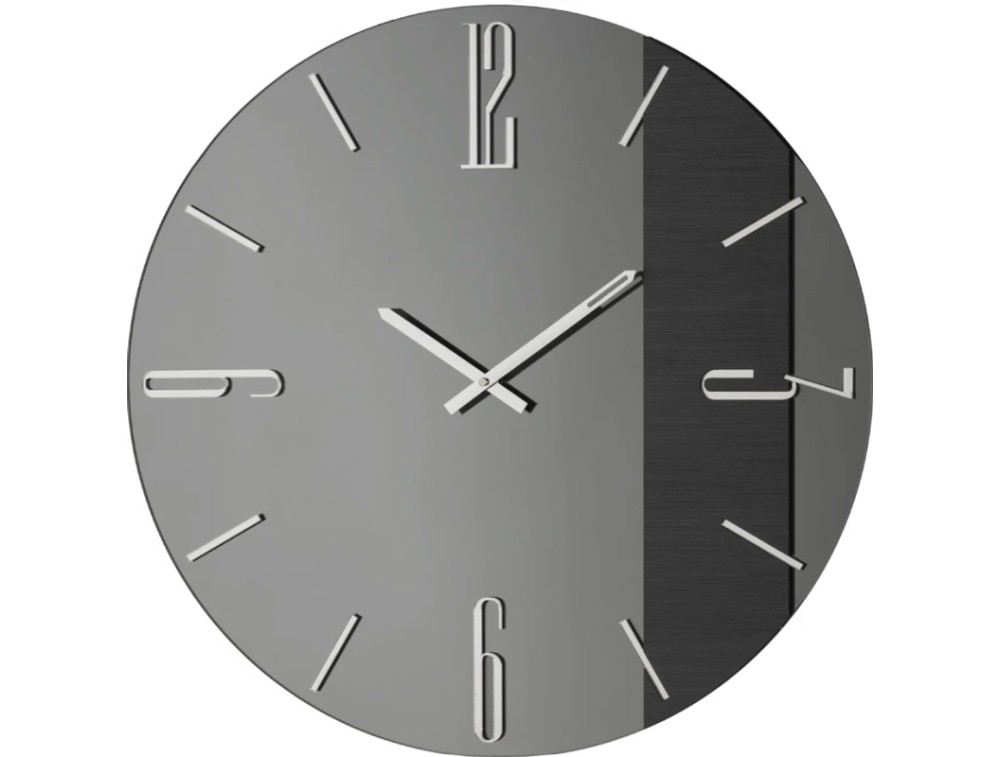 Designed to take center stage on large walls in living rooms or reception areas. The bronze or smoked mirrored glass frame, paired with an elegant side section with a brushed metallic finish, adds depth and luminosity to the overall effect. The gold-plated plexiglass numerals and polished metal hands blend harmoniously into a clean, refined design. A perfect balance of modernity and style, crafted with artisanal care. Free shipping and a 2-year warranty.