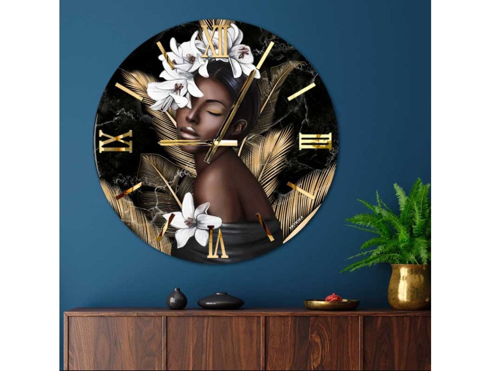 The theme is a stylized female portrait, immersed in a luxurious, floral atmosphere. The style is contemporary, with a strong visual impact that combines natural elements and glamour. Shipping is free and the warranty is 2 years.
