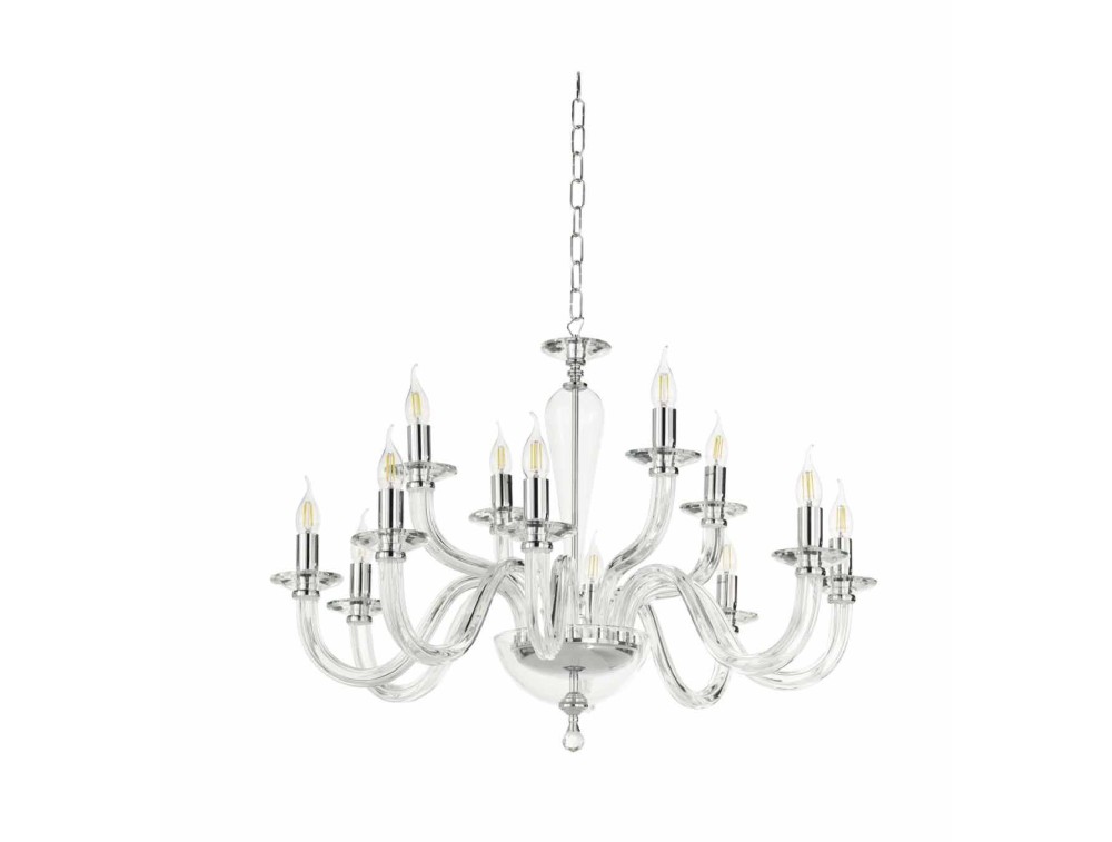 The chandelier of the Ravel collection by Ciciriello lighting is made with a handmade glass structure with metal details in gold and chrome. Ravel is a collection that has multiple finishes of its products to ensure that they are versatile and ideal in any type of environment. The finishes available are white, gold, chrome and black, always avant-garde colors and that will never go out of fashion.