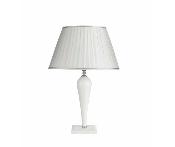 The table lamp of the Ravel collection by Ciciriello lighting is made with a handmade glass structure and has gold and chrome details. The lamp is available in white, black, chrome and gold, so that it can be inserted in any type of environment, from the most classic to the most modern.