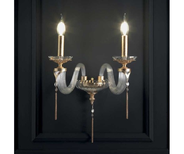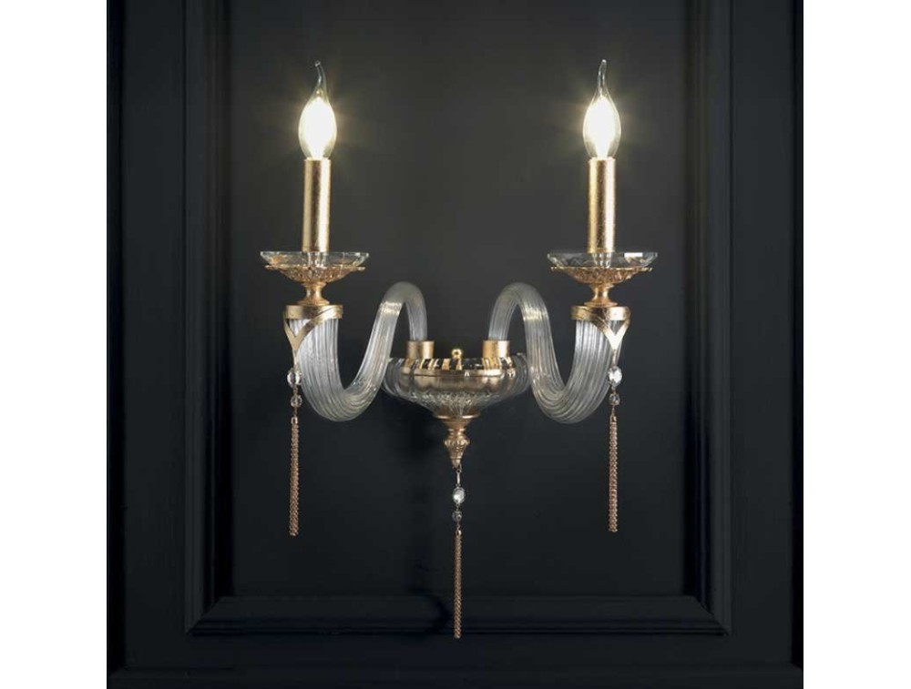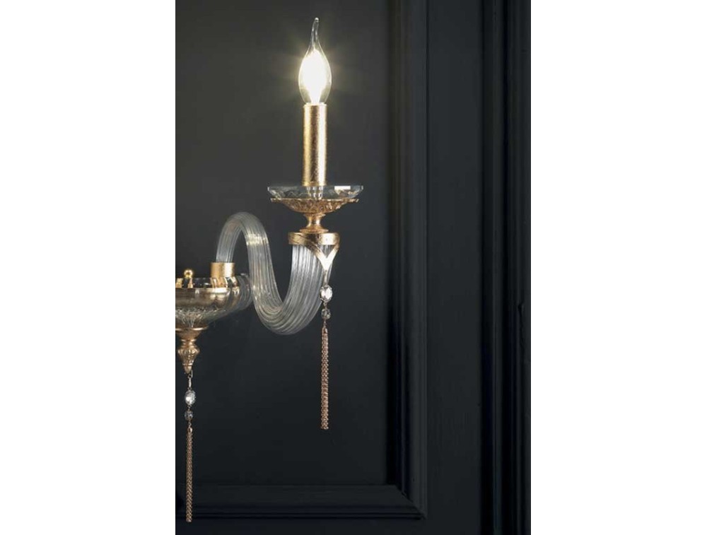 The wall lamp of the Empire collection by Ciciriello is made with a structure in blown glass and brass and is available in four different finishes: transparent crystal, smoke, garnet red and amber. The lamp, characterized by slender lines and the perfect agreement between blown glass and brass, will make the rooms in which it will be placed precious. A product Made in Italy.