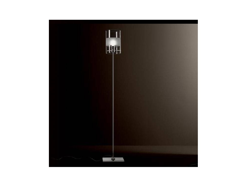 De Majo illuminazione, piantana da terra di cristallo con montatura in metallo cromato e diffusore disponibile in cristallo sabbiato oppure molato e sabbiato.