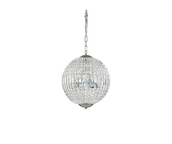 Ideal lux suspension lamp made with chromed metal structure and rectangular and octagonal crystal decorative charms diffuser. Lightbulbs included.