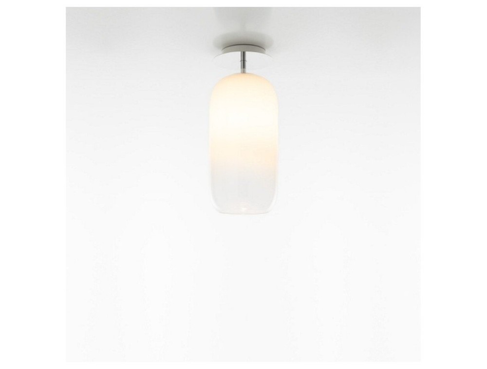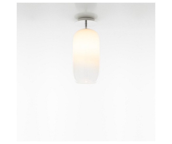ARTEMIDE, ceiling lamp with a contemporary design realized with an aluminum structure and blown glass diffuser available in silver, white, blue, bronze and copper.