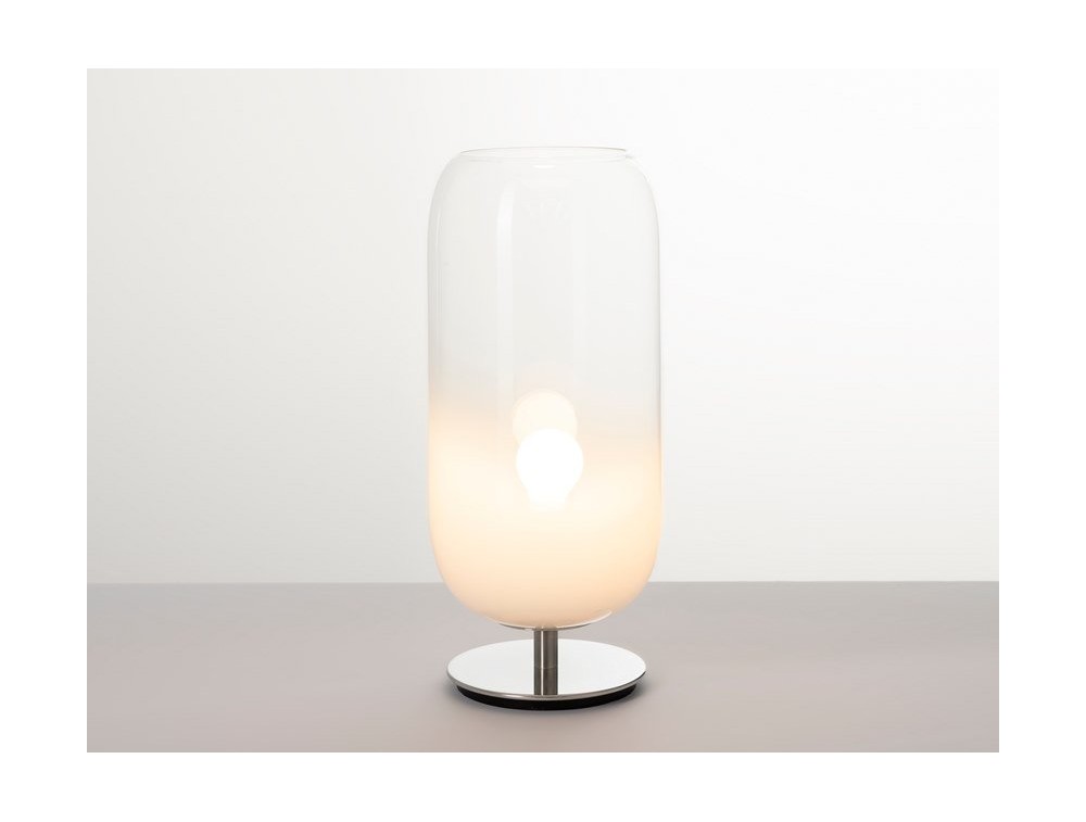 ARTEMIDE, table lamp with a contemporary design realized with an aluminum structure and blown glass diffuser available in silver, white, blue, bronze and copper.