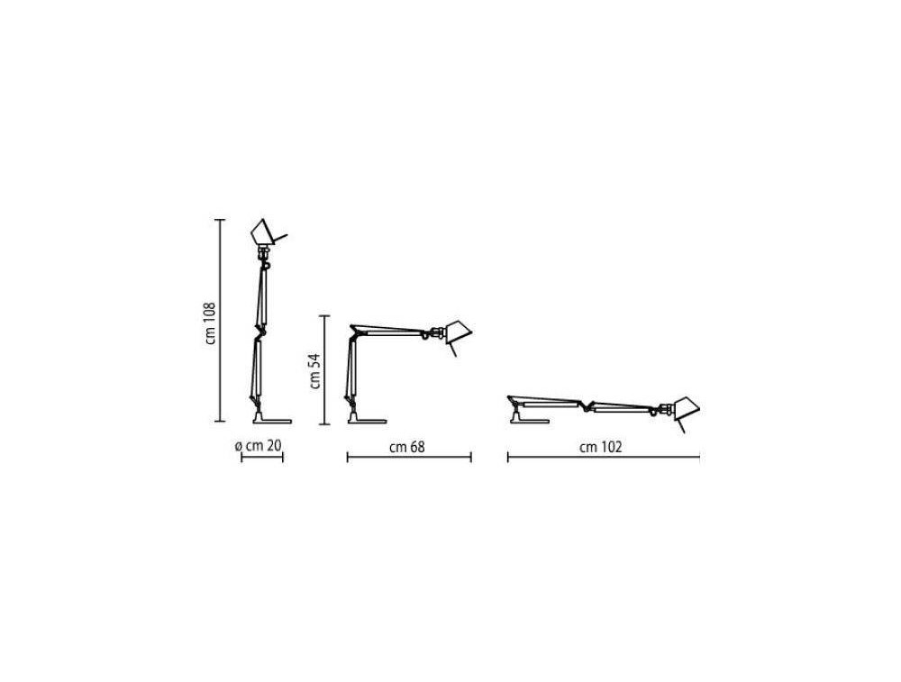 Artemide lighting, table lamp, structure and cantilecered arms in polished aluminium .
