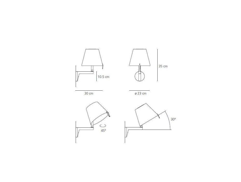 Artemide lighting, design wall lamp with painted zamak base, aluminum stem and silk satin diffuser.