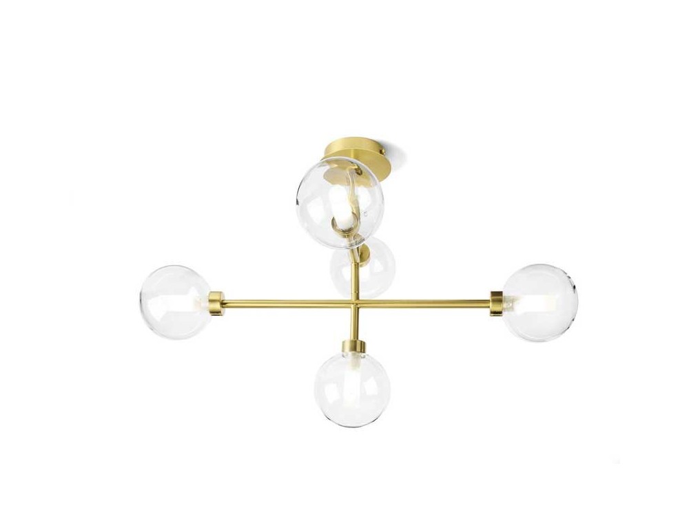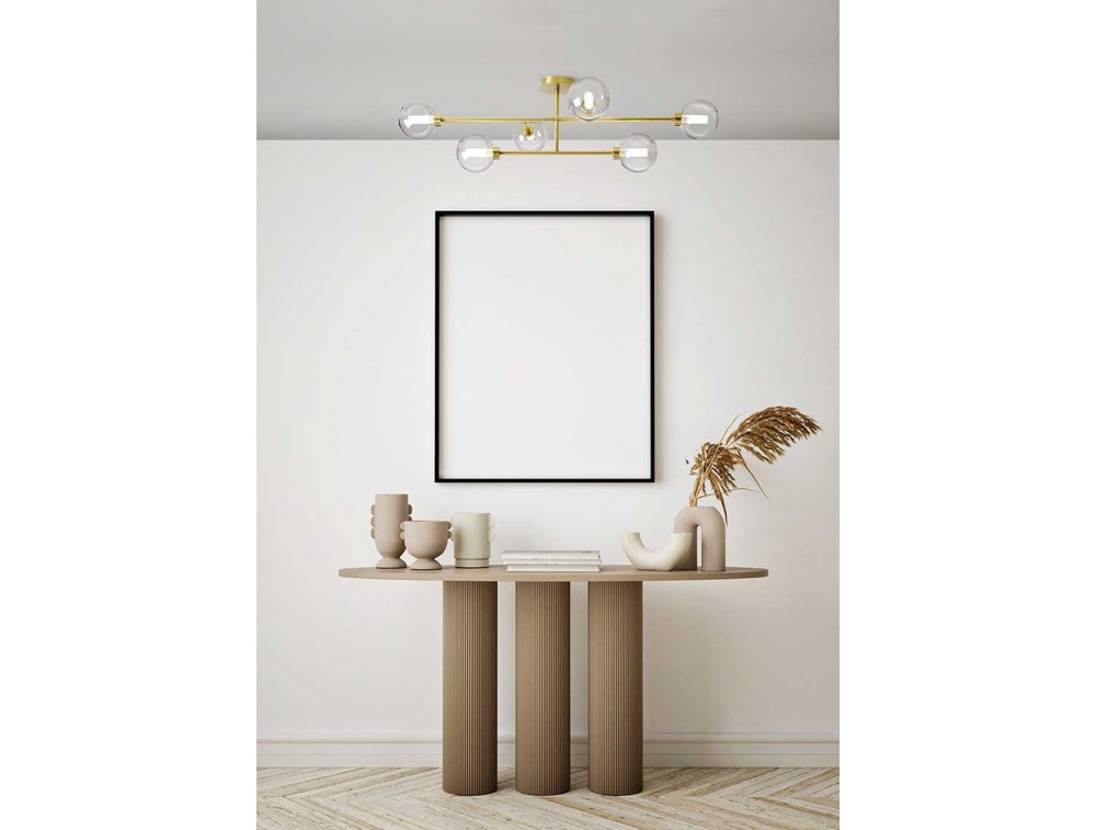 Unlike the more commercial models, Miloox products have high quality standards such as the use of brass for this brushed gold ceiling light accompanied by transparent glass spheres with white glass cylinders inside to hide the bulb. Light and Design for this collection of ceiling lights but also for wall installation with a slightly higher price but with excellent finishes for those looking for simple ceiling lights that can illuminate medium-large rooms such as living rooms, lounges or a bedroom . The g9 lamp holders allow the use of interchangeable LED bulbs that can be purchased by the customer separately according to their needs.