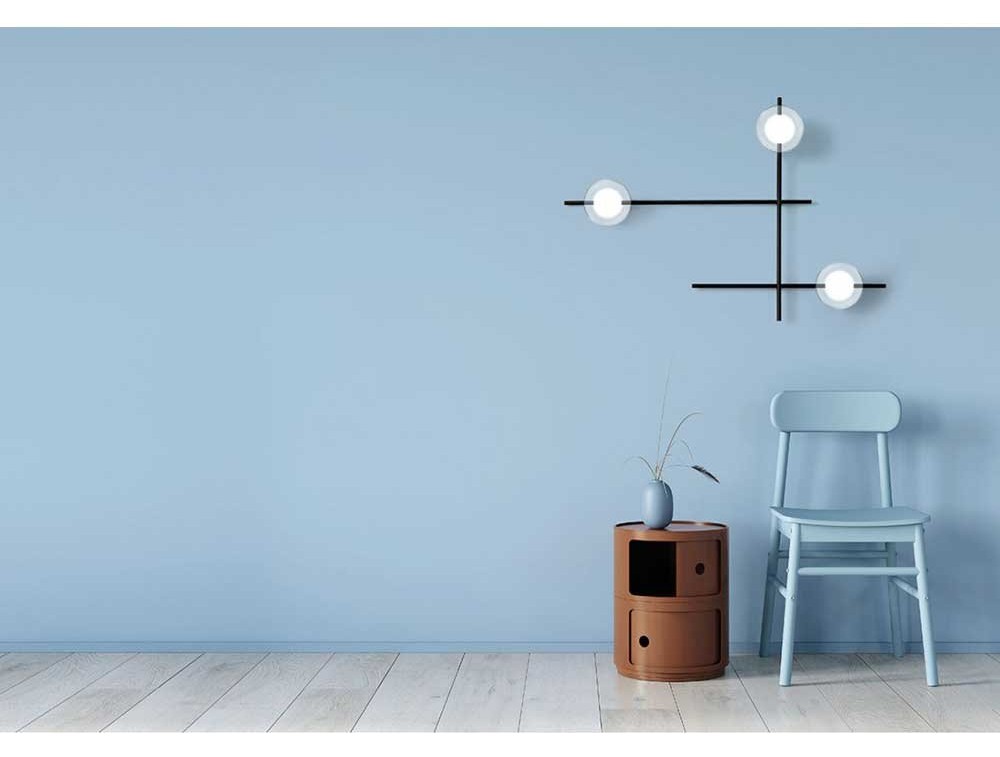 Wall light with an innovative style with 3 lights configurable according to your needs, designed and engineered to illuminate and furnish the walls of your living room, lounge but also of an office or commercial spaces such as restaurants and bars.