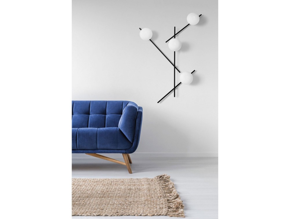 A customizable wall light, as the structure is made up of 4 arms, of which two, the secondary ones can be rotated by choosing between 2 configurations. The structure is in black painted metal, while the diffusers are spherical in shape entirely in milk white glass. The bowl shape of the 4 diffusers, with a diameter of 14 cm, spread the light throughout the surrounding environment and on the wall, also available in the variant with transparent spheres. A perfect wall lamp for lighting both residential and commercial environments, you can create personalized atmospheres by combining other products from the same series.