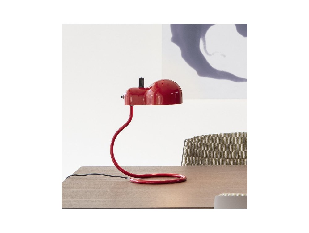 The shape resembles that of a little mouse with a tail. The cap incorporates the LED light source and the slits in the upper part have the function of dissipating heat and avoiding direct glare. The switch is deliberately faithful to the original model and the reflector allows you to direct the light as you like. Also available in a special edition: gold/black, completely red or chrome. Recommended as a desk and bedside lamp. Also ideal as a gift idea.