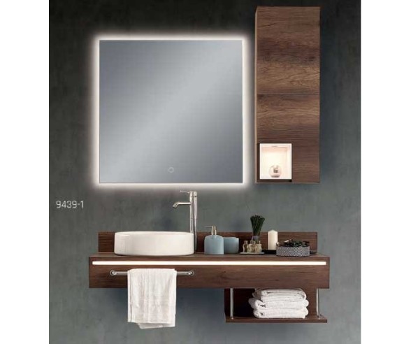 Acb lighting, bathroom mirror with metal and glass structure. The lamp is available with warm or natural light and in two different sizes, small or large. The different colors of brightness and the two different sizes, make this lamp very versatile, and the rectangular shape and LED light that comes out of the mirror make sure that when you look at yourself in the mirror, you will feel like real stars!