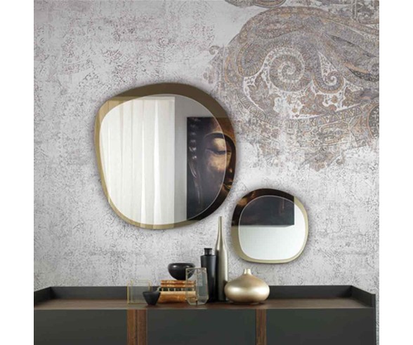 CAPODARTE FILL shaped mirror, composed of two overlapping glasses. Frame in glossy black or bronze.