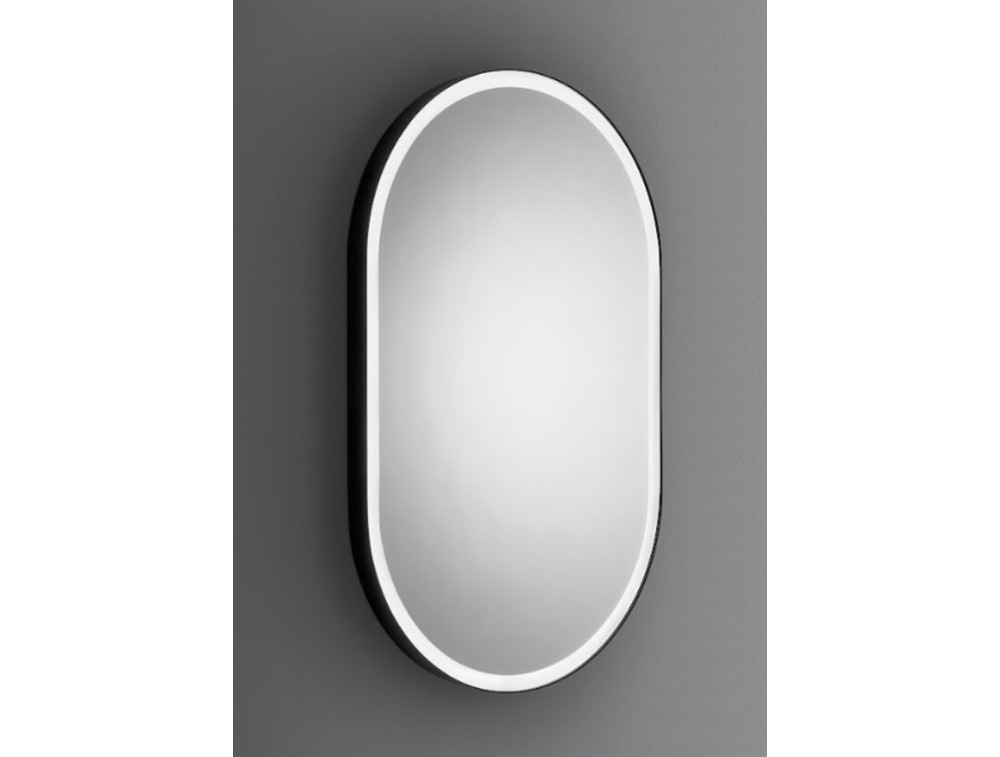 Mirror with a 20mm internal sandblasted, painted metal frame and LED backlighting. Available in various finishes.