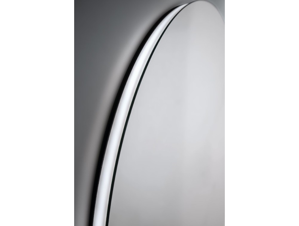 Round, polished-edge mirror with perimeter LED backlighting and high-performance light diffusion. 4mm thick mirror. IP44 protection.