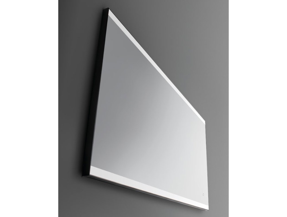 Mirror with 30 mm sandblasted top and bottom, LED backlighting, and a perimeter frame in various colors. IP44 protection. Custom-made available. Can be mounted horizontally or vertically.