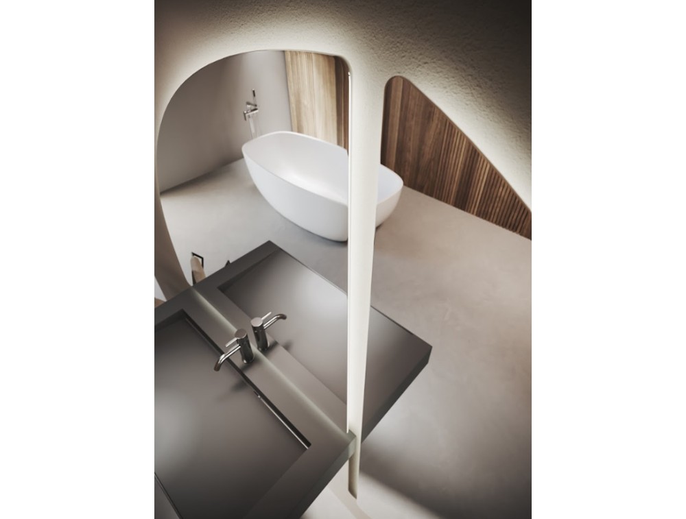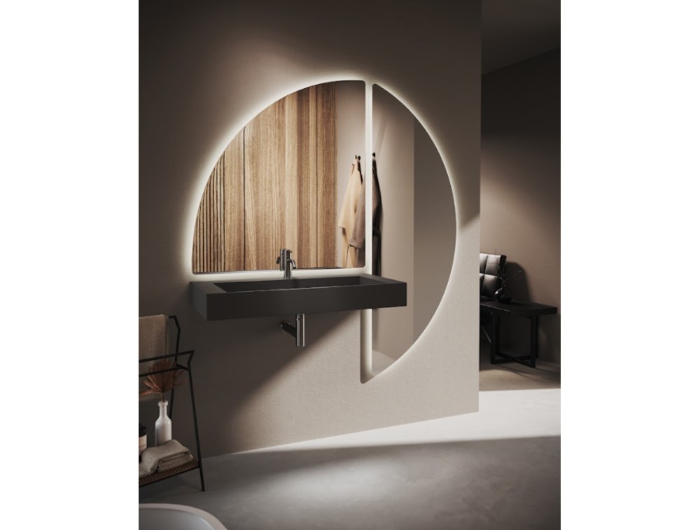 Polished-edge shaped mirror with perimeter LED backlighting. Diffusion lighting and IP44 protection. Mirrors can be purchased individually.