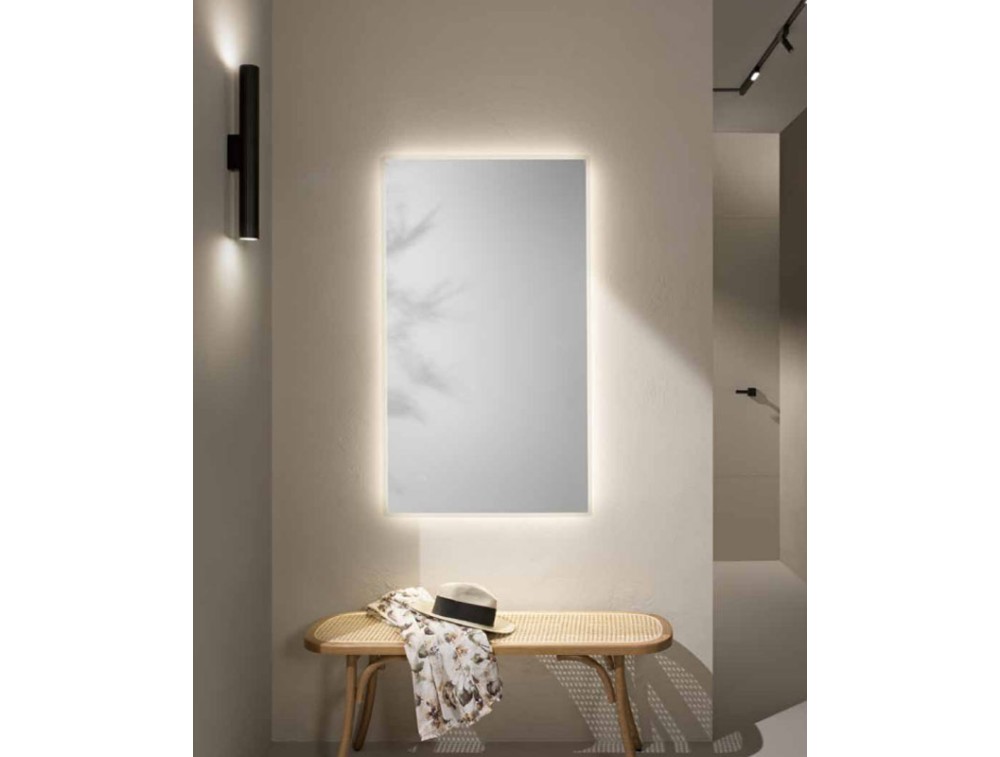 Decorative and technological collection featuring mirrors with rounded corners and satin edges, suitable for vertical or horizontal installation. The 3-tone dimmable backlighting is managed by a touch system with a memory function. The light source has a lifespan of 30,000 hours. PC frame and explosion-proof film on the back of the mirror. Mirror thickness: 4mm. Driver included. Can be installed vertically or horizontally.