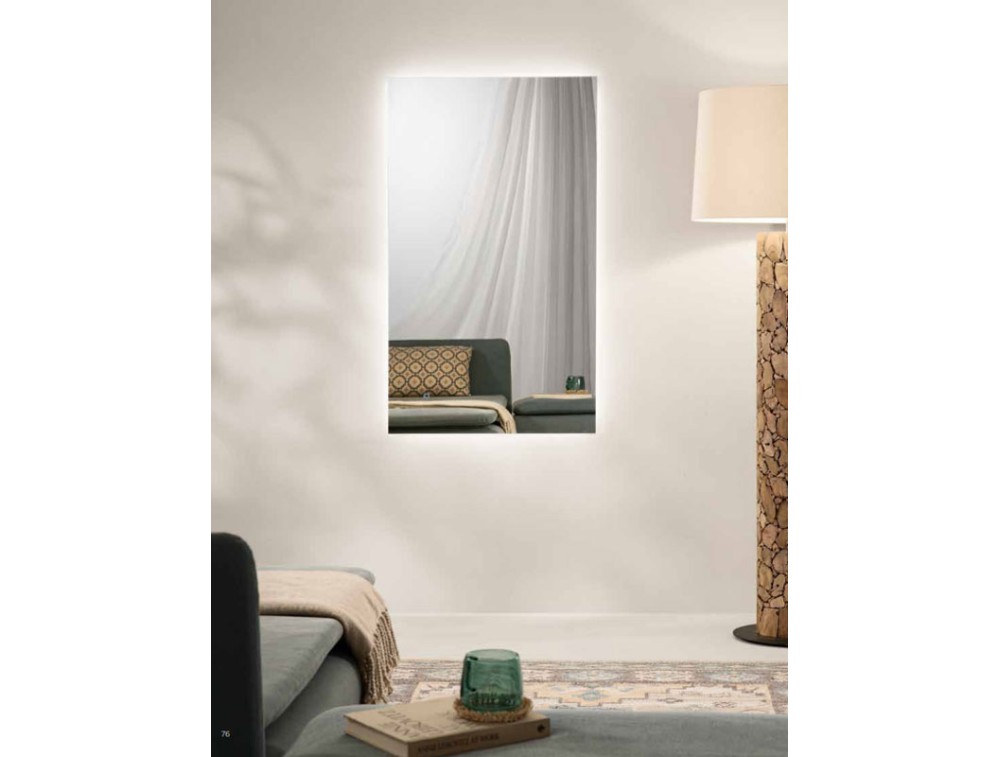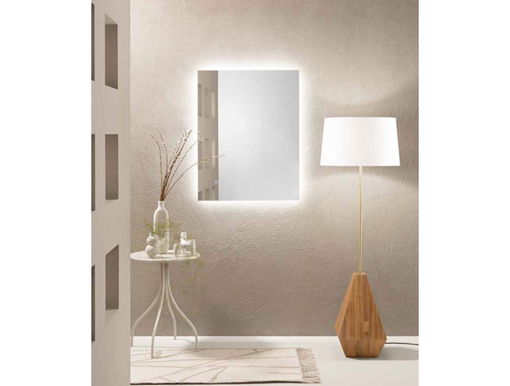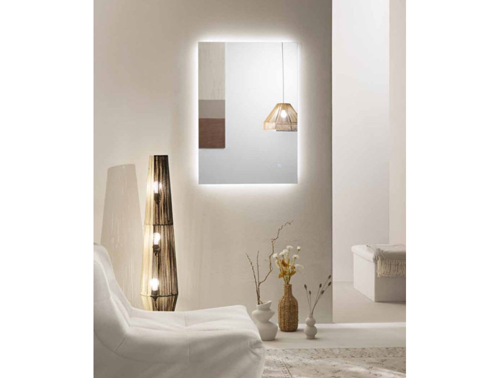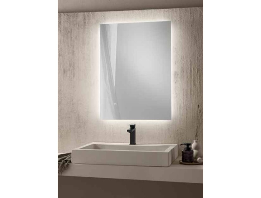 Collection of rectangular mirrors with horizontal and vertical mounting and all the charm of customizable backlighting with a touch button: 3 CCT, dimming, and memory function. Explosion-proof PVC film. Light source lifespan 30,000 hours.
