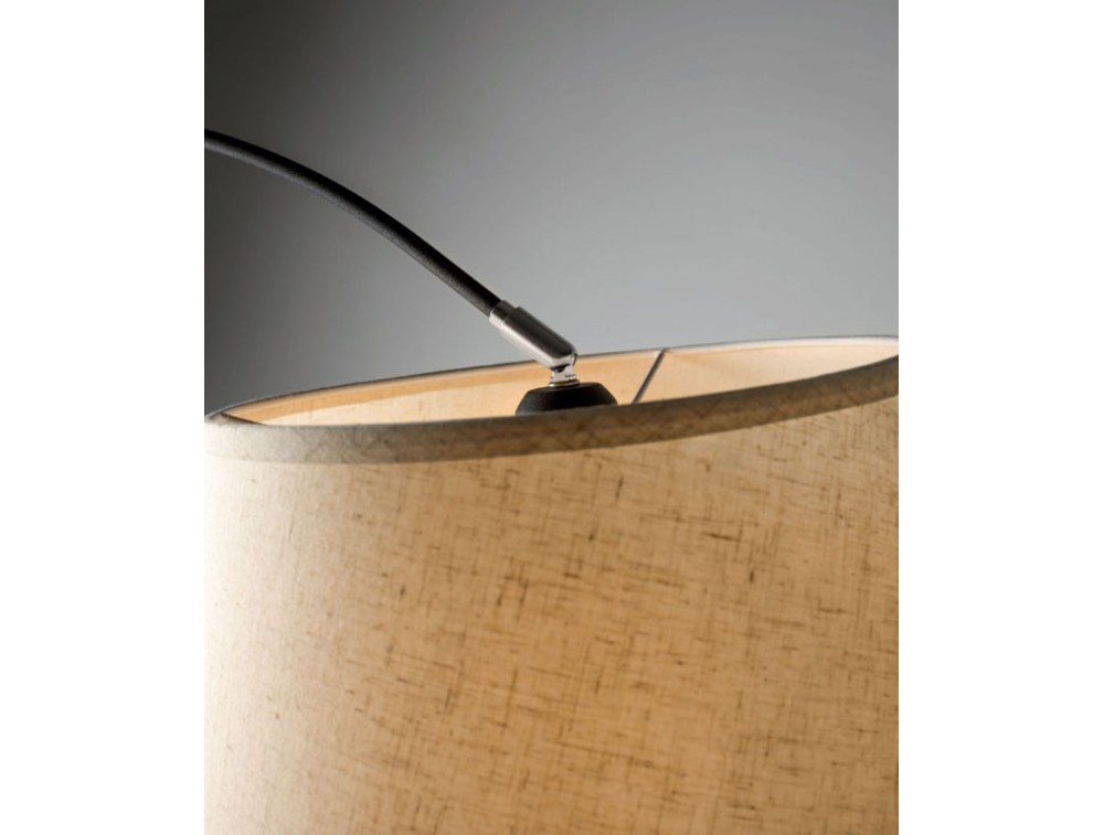 Black painted metal frame, black marble base. Adjustable sand-colored lampshade with ivory texture. Ideal for creating a suspended light without the need for ceiling installation. Ideal for decorating and illuminating kitchens, living rooms, and bedrooms. It fits perfectly with contemporary or soft industrial decor, thanks to the combination of the rigor of the metal and the naturalness of the fabric lampshade.