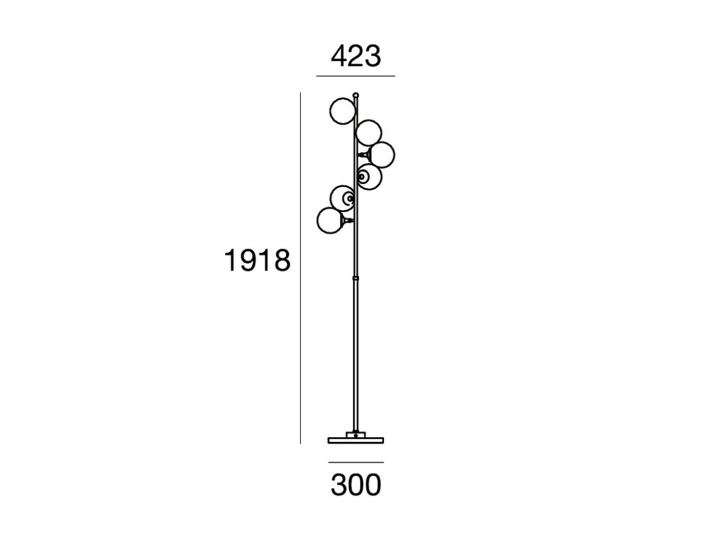 At the heart of the design are carefully selected materials: the white Carrara marble base adds a refined, sculptural presence, while the black metal and brass body with galvanic gold plating enhances the contrast between modernity and tradition. The diffusers filter a warm, soft light, providing illumination that envelops the space without glare. LED technology guarantees energy efficiency and longevity, for a contemporary lighting solution that retains the elegance of the past. Transform any space into a refined tribute to the 1950s, an iconic era of elegance and avant-garde. Its six light sources, wrapped in precious white blown triplex glass, intertwine in a fluid and harmonious movement, evoking the enchantment of distant galaxies and the allure of the cosmos. The sleek lines and refined details create a sculptural silhouette, capable of interacting with the most exclusive spaces, from bourgeois living rooms to contemporary architecture.