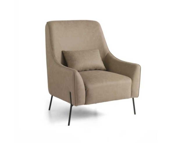 CAPODARTE Armchair DEBBIE in cloudy eco-leather with painted metal feet, available in dove grey, anthracite or green.